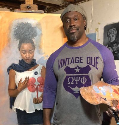 Jerry’s painting Sharing Hope is about centering the humans among us who are willing to share a piece of themselves and their humanity with those in need of hope. As a Brother of Omega Psi Phi Fraternity Inc., Jerry was excited to contribute to the meaningful and vital messaging behind LifeLine: The Ultimate Bond.